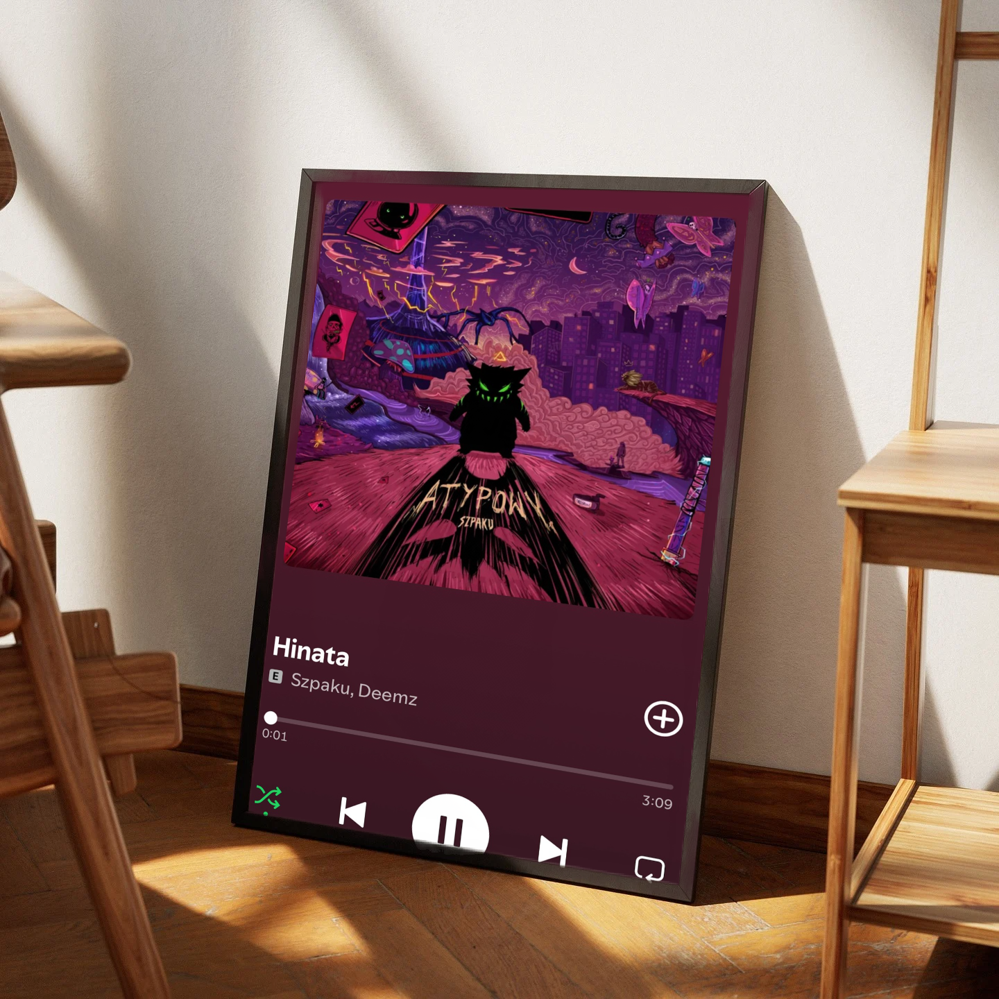 ✅ Gotowy do powieszenia – czarna, minimalistyczna rama z plastiku idealnie komponuje się z grafiką, nadając jej elegancki wygląd.